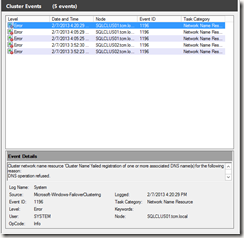 Registro de nombre del Clúster de SQL Server Falla